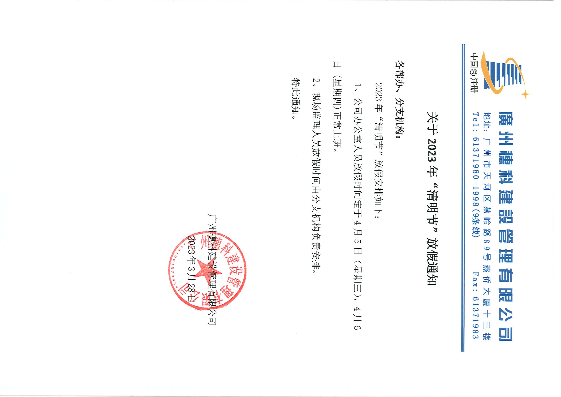 關(guān)于2023年“清明節(jié)”放假通知