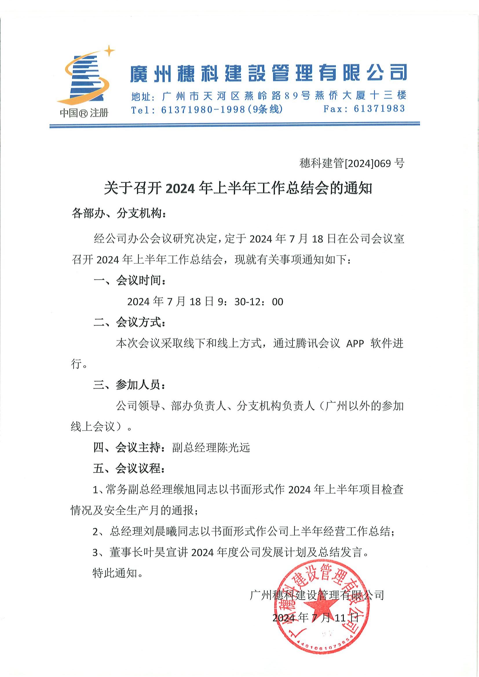 關(guān)于召開 2024 年上半年工作總結(jié)會的通知